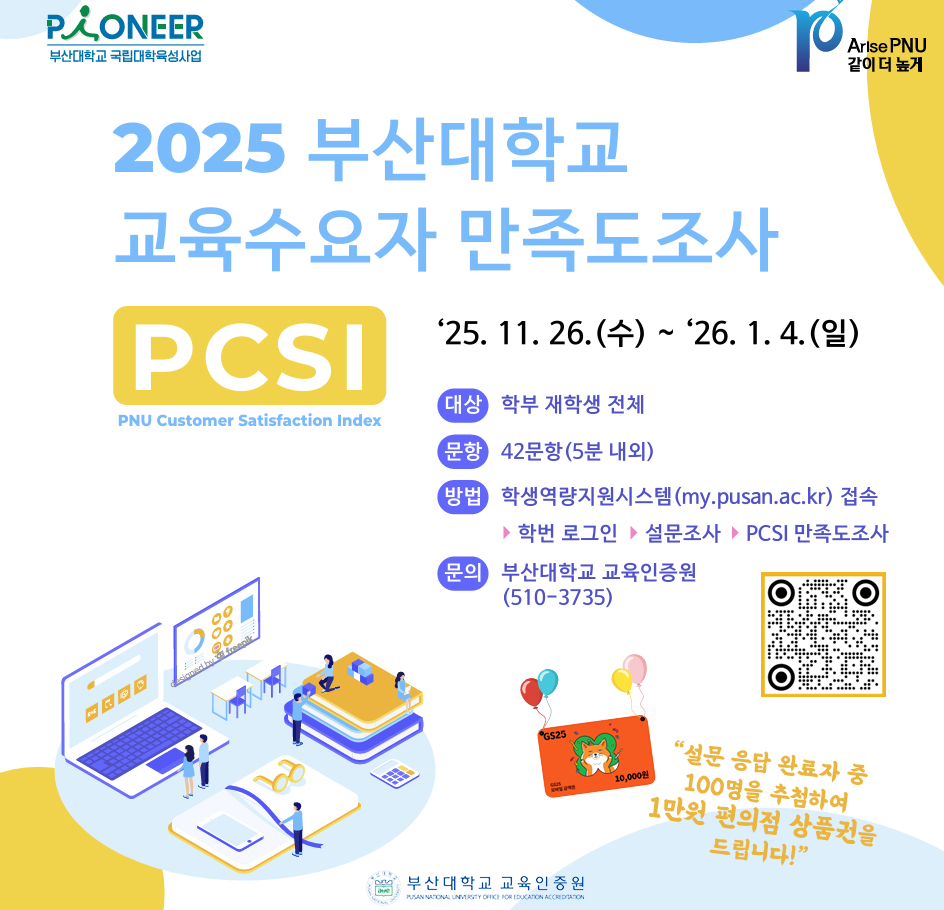 2025 부산대학교 교육수요자 만족도조사(PCSI) 참여 안내